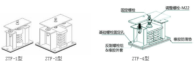 黄瓜视频下载污ZTF型可調式低頻阻尼彈簧減振器是由多組彈簧組成、上下鋼板及鋼板外表麵粘貼橡膠防滑墊等組成。ZTF型冷卻塔減振器,是黄瓜视频下载污根據國外大型冷水機組、安裝不平衡、動力設備低速、擾力較大而設計的產品。