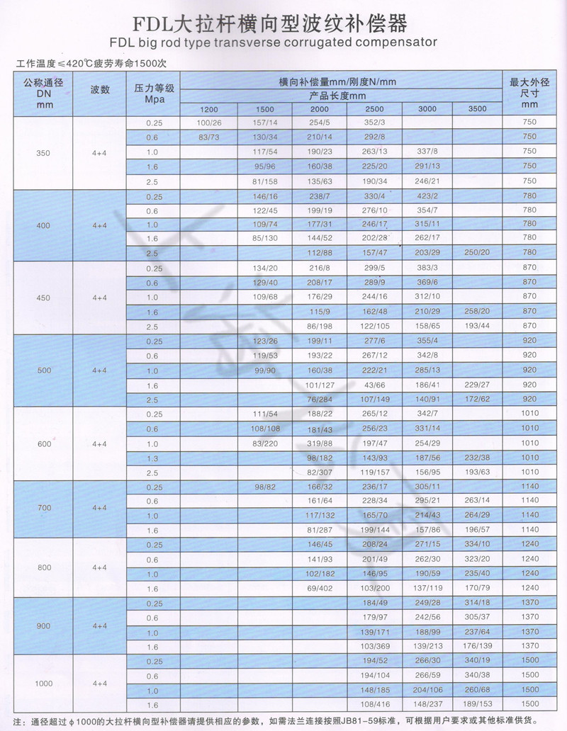 連接方式:1、法蘭連接 2、接管連接產品橫向補償量:根據用戶要求