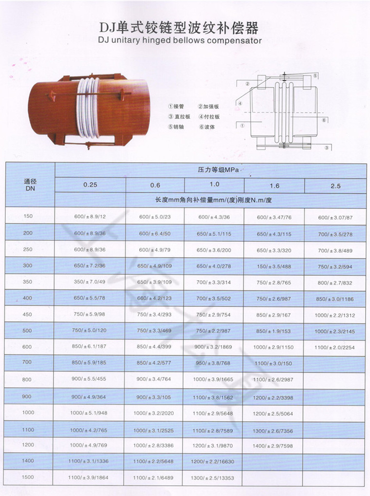 用途:鉸鏈型波紋補償器適用於角位移的補償連接方式:1、法蘭連接 2、接管連接產品角向補償量:±4度-±9度