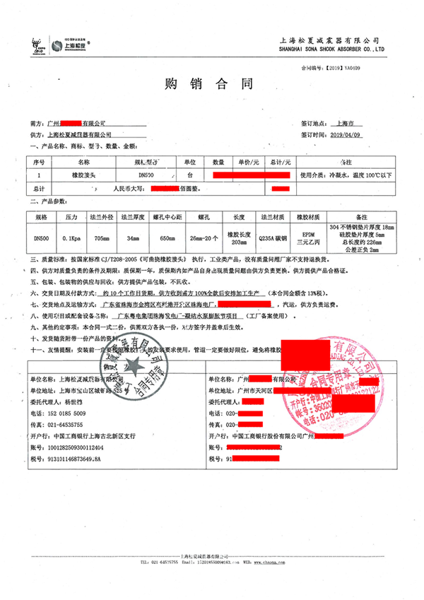 二、【臨沂市陽光熱力公司管道更換波紋補償器項目】波紋補償器銷售合同: